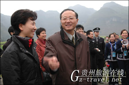 副省长蒙启良、铜仁地区专员谌贻琴、省旅游局副局长李三旗及有关领导陪同考察。