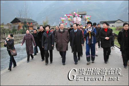 2月22日下午,国家旅游局邵琪伟局长一行在江口县太平乡云舍土家民族村的考察乡村旅游。