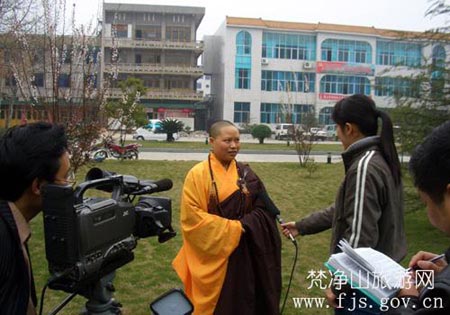 行愿法师接受印江电视台、报纸、梵净山旅游网站的采访