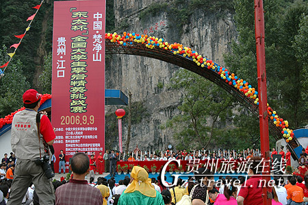 金色的九月,秋风徐徐;美丽的江口,山青水秀,在贵州江口中国梵净山攀岩基地,由中国大学生体育协会攀岩分会主办,江口县人民政府承办,贵州省教育厅、梵净山自然保护区管理局、铜仁东太房地产开发有限公司、贵州三特梵净山旅游业发展有限公司、贵州江口锦源水电开发有限公司协办的中国梵净山“东太杯”全国大学生攀岩精英挑战赛于今日上午9时隆重举行。