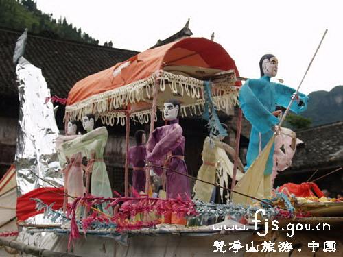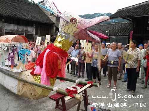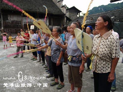 7月17日,印江土家族苗族自治县木黄镇地茶村农民举行土家族特有的“划龙船”民俗活动,驱邪避灾,祈求风调雨顺。该活动是傩文化的一种独特形式,从农历五月二十六日开始,农历六月初六结束。