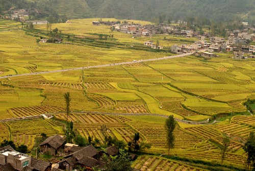 9月4日,贵州省印江土家族苗族自治县合水镇成片的稻谷成熟,一派丰收的景象。