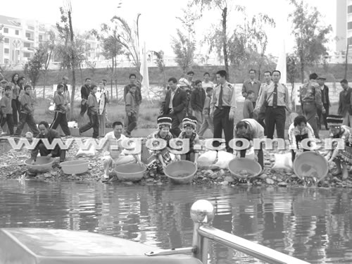 6月7日,松桃自治县渔业局与寨英镇镇政府,将20万尾优质鲤、草、鲢、鲫、鳙鱼苗,放入梵净山脚下的寨英古镇河流。