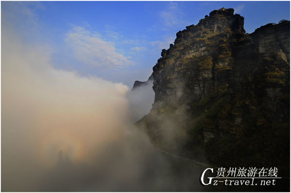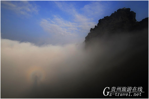 本站讯 今年入秋以来,天气晴好,梵净山顶云海不时出现,也使难得一见的佛光频频出现,大批朝山的游客惊喜不已。