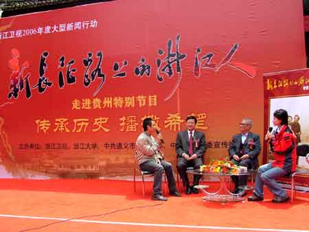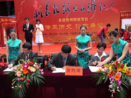 在摄制活动中,现场访谈了中国工农红军黔北游击队队员卢仰柱,现龄84岁的浙江大学农业经济系47届毕业生幸必达老先生,现浙江大学教授、贵州大学校长陈叔平,湄潭籍浙江大学在读生谢冬三代浙大人等。在摄制现场,举行了湄潭县、浙江大学、贵州大学合作共建“社会主义新农村建设示范基地”签约仪式既揭牌仪式及浙江大学和湄潭县签署了《特色优质果品产业化示范基地建设》、《无公害茶叶生产技术和茶叶新产品开发》、《精品西瓜产业化示范基地建设》、《浙江大学西迁历史陈列馆虫害的综合防治》等专项协议。