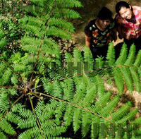 两位女士在贵州赤水竹海景区观赏珍稀植物桫椤。