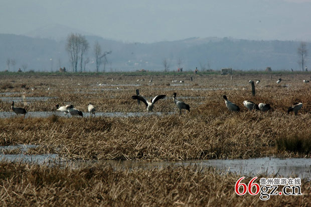 草海是贵州最大的天然淡水湖,海拔2171.7米,覆盖面积保持在30平方公里以上,以水草繁茂而得名。草海四面青山环抱,林木茂密。湖中盛产鱼虾、蒲草等水生动植物,栖息着 100多种珍奇水鸟,中国特有的高原候鸟黑颈鹤,每年都要在这里越冬。主要保护以黑颈鹤为主的湿地鸟类。草海素有“鸟的王国”之称,共有鸟类100余种、珍稀鸟类70余种,特别珍稀的鸟类有黑颈鹤、灰鹤、丹顶鹤、黄斑苇雉、黑翅长脚鹬和草鹭,还有大量的大雁和野鸭,是世界人禽共生、和谐相处的十大候鸟活动场地之一,是冬春观鸟,夏秋避暑的最佳选择地。