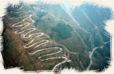 一帧褪色全景照片:壁立的山体,盘旋的公路。像是天公抖落的银练,从云端直坠谷底;又像是曲身蓄势的金龙,昂道直窜云端。在直道和弯道上,美军gmc十轮大卡车,沿着这条接二连三的"~"状的公路,从幽深的谷底向着险峻的山顶依序驶行,可以"听"到发动机的低沉喘息,可以察觉到驾车兵的咚咚心跳……