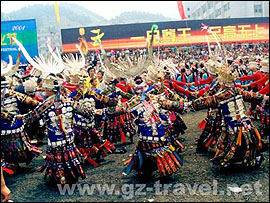 芦笙节是“百节之乡”凯里的“百节之冠”。每逢重大喜庆节日,数以万计的群众自发相聚吹芦笙、跳铜鼓、斗牛、斗鸟、对歌、赛马,盛况空前……