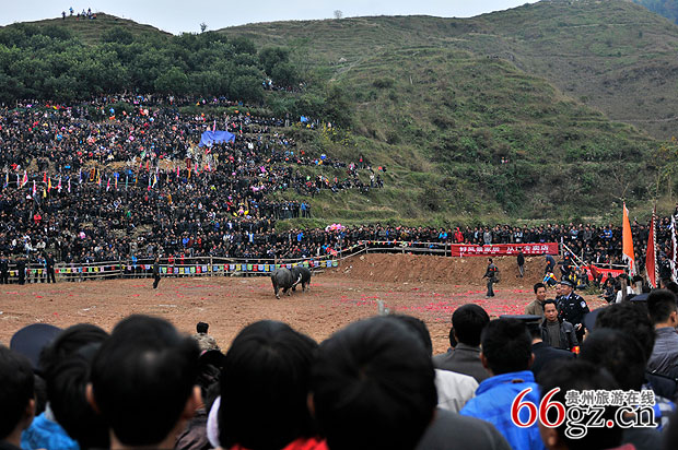 斗牛的日子周边寨子的人都会聚集到此地,并吹奏芦笙助兴。
