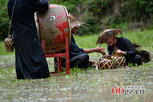 “剑河苗族水鼓舞”是中国最为独特的民间舞蹈,流传于贵州省黔东南州剑河县革东镇大稿午村,是在水中跳的一种“水、鼓、舞”相结合的传统舞蹈。当地苗族群众以此来祭祀祖先、祈求风调雨顺、村寨平安,至今约有500多年的历史。