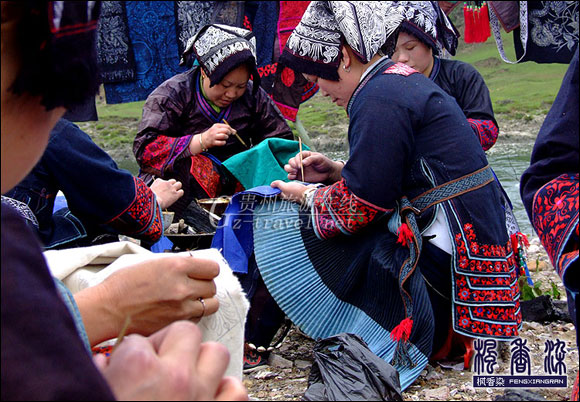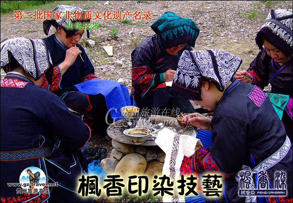 惠水枫香染,类似蜡染,是惠水地区民族传统印染工艺之一。因其历史悠久,工艺独特而享有盛誉,在苗族、布依族中较为流行,其衣裙、背扇、被面、床单、帐檐等多喜用枫香染。