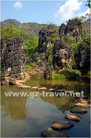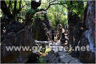 ¡¡¡¡Î»ÓÚÈý²íºÓµÄ·üÁ÷±íÃæºÍºÓµÀµÄÁ½²à¡£ÕâÊÇһƬˮÉÏʯÁÖ¾°¹Û£¬Ãæ»ý0.19ƽ·½¹«ÀÕâÀïÓдó´óССµÄÌìȻɽʯ¡¢Ë®Ê¯Åè¾°¡£ÍäÍäÇúÇúµÄʯ°åСµÀ£¬´©ÐÐÓÚʯ±Ú¡¢Ê¯º¾¡¢Ê¯·ìÖ®ÖУ¬åÔåÆÓÚÅè¾°±ßʯ֮ÉÏ¡£ÑØÐ¡µÀÓÎÀÀ£¬Ì§Í·ÊǾ°£¬µÍÍ·ÊǾ°£¬Ç°ºó×óÓҽԳɾ°£¬·Â·ðµ½ÁËÌìÉϵÄÏɾ³£¬µØÏµÄÃÔ¹¬¡£Ö÷Òª¾°¹ÛÓв½²½¾°¡¢Ò»ÏßË®¡¢¿ÕÁéʯ¡¢ÌìÐÇÕÕÓ°¡¢³¤±íÏ¿¡¢²àÉíÑÒ¡¢ÍáÊáʯ¡¢Ñ°¸ùÑÒ¡¢Ô§ÑìÌÙ¡¢ÅÌÁúͼ¡¢ÃÀÅ®éÅ¡¢Ïó±Çʯ¡¢ÌìÐÇÂ¥¡¢³ûÓ¥³öɽµÈ¡£