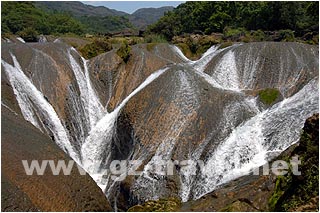 ÒøÁ´×¹Ì·ÆÙ²¼Î»ÓÚÌìÐÇÇž°ÇøÄÚ£¬ÆÙÃæ³É©¶·ÐΣ¬µ×²¿ÊDzÛ×´ÈÜÌ·£¬ÏñÒ»ÕÅÕÅϸ²µÄÁ«Ò¶£¬½»´í´îÁ¬£¬ºÓË®ÔÚÿһÕÅÒ¶ÃæÉϾùÔÈÆÌ¿ª£¬×ÝÇéÂþÁ÷£¬ÏñǧǧÍòÍòÌõ´ó´óССµÄÒøÁ´£¬ÇáÒôÈÂȵûº»º×¹ÈëÈÜÌ·£¬ÓÀԶûÍêûÁË¡­¡­ËüÒÔÄÇǧ˿ÍòÂÆµÄÇé̬ºÍÈçÆüÈçËߵįÙÉù£¬³ÉΪÆÙ²¼ÈºÖÐ×îÃÀµÄÆÙ²¼¡£