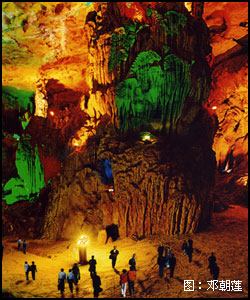 b、景区游玩行程2:→从码头乘船进入水溶洞,乘船水路约800米左右,花费时间为10分钟→水路结束后游览旱洞,旱路全长约1200米左右,旱洞内游玩花费时间约为1个小时→游玩结束后顺原路乘船返回码头,花费时间约为15分钟。总花费时间约为:1个半小时!
