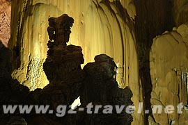 贵州属于喀斯特岩溶地质地貌,故形成了山中有洞洞中有景的地理征,出现了石林、石沟、石牙、峰林、漏斗、天生桥、岩溶湖、瀑布等地表岩溶形态,又有溶洞、地下河、地下湖、钟乳石、石柱、石笋、石幔等地下岩溶形态。从而组成了发育完整、类型多样、造形奇特、宏伟瑰丽的岩溶洞穴系统。毕节织金洞便是这之中的姣姣者。