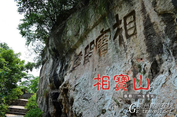 相宝山(又名照壁山,俗称“平定高峰”)位于贵阳城区东北里许,山之北面有狮子山,狮子山达的“狮子口”正好大张着嘴对着相宝山。相宝山南连扶风山,与扶风山是一脉所连。扶风山景区旧时称栖霞景区(今立牌坊称栖霞胜景)包扩的就是东山、扶风山、相宝山三个景点。据明万年历间郭子章著《黔记.山水志》记载:“城北东一里有照壁山,俗名‘平顶高峰‘。”清乾隆《贵州通志》也有记载:“城北东一里,俗称’照壁山‘,排云列嶂,俨如翠屏,与东山对寺,上有梵宇,颇称名胜。”上相宝山,东南两边皆可有道,东边羊肠小道,曲回难行;南边今贵州师范大学校园内有路可行,路缓好走。从南边上山,行约半里即可抵达原寺门附近,在拾级而上二三十阶梯进到寺内。殿内规模不大,原来却是佛门清净之地,正中供奉有佛像,两旁塑有十八罗汉。原相宝山佛殿外有长廊,围以栏杆,凭栏俯视悬崖峭壁,尽在脚下。遥望四方,黔灵矗于前,贵山耸于右,扶风、东山排于左,岚烟云端,朝边暮幻,别具情趣。寺侧有石洞名“碧云洞”,洞口石壁上携刻着“相宝留云”四个大字。据说,此洞为当时佛教徒被罚面壁之处。洞西有危崖陡起,四围大树参天,山又为一小阜,原结庐山楹,宋朝清官包青天包拯像于内。