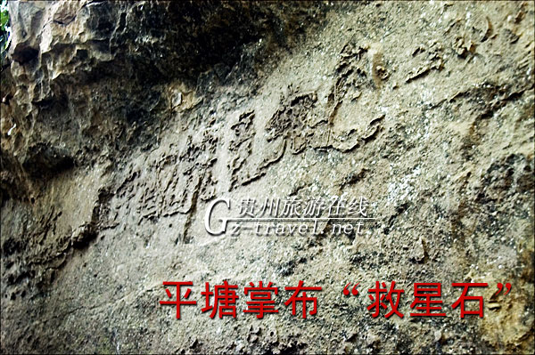 平塘掌布风景名胜区属平塘国家地质公园的一部分,总面积为182平方公里。因河谷中一块巨石上自然形成的“中国共产党”五个大字而扬名,据中科院专家考证,这几汉字位于距今亿年左右的二叠统栖霞组深灰色岩中,岩层中的古生物化石及生物碎屑突出于石灰岩上,至今未发现人工雕凿及其它人为加工痕迹,形成上亿年属世界奇观,国之珍宝。