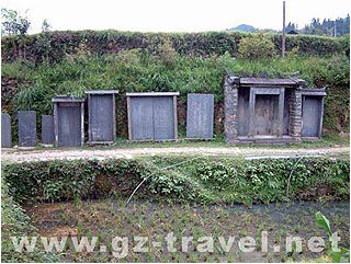 还有那竖立于寨门口的整齐、保存完好的古碑,分别记载该寨村民从明朝到清朝几百年来集资修建义渡义船、架桥修路的经过,体现当地民众自古以来热心公益的精神风貌。村中通往各处的路都是由大石板铺成,或用清水江的鹅卵石镶嵌成花阶路,十分整洁。村中南下江边汲水浣洗的两条路,都是石板铺就,很方便寨中民众行走。路口这块"视履考祥"碑,记载修路的过程,在村后的山边,有三口水井,是村中妇女自发集资修建的,各口井边一块石碑记载了修井人和损钱妇女的姓名和钱币数量,说明村中妇女也和男人一样热心公益事业。