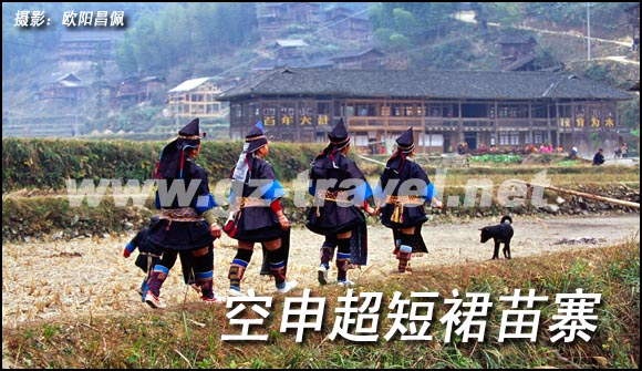 空申超短裙苗寨距县城94公里,全村215户,1015人,因苗族妇女终年身穿五寸长的超短裙劳作生活,且历史悠久,被誉为世界超短裙的故乡。村寨依山而建,四周山峦起伏,林木葱葱,一条清澈的小溪从寨旁流过,民居布局合理,吊脚楼鳞次栉比。这里最为世人瞩目的是每年一度的“茅人节”。每年农历二月至三月,成年男女青年不论年龄大小,结婚已否,凡自己乐意都可以任意找与自己情意相投的伴侣结队到茅人坡扎茅人、对情歌、逗趣。特别意合情投者,则相互暗示,离群另寻静处。节日气氛热烈、奔放、自由、浪漫。