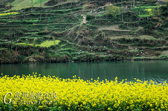 菜花湾苗寨,坐落在人文景观参与自然景观的怀抱之中,既得天独厚,更以其特有的民情风俗,为舞阳河添姿加彩,,喜迎着来自四面八方的游客。
