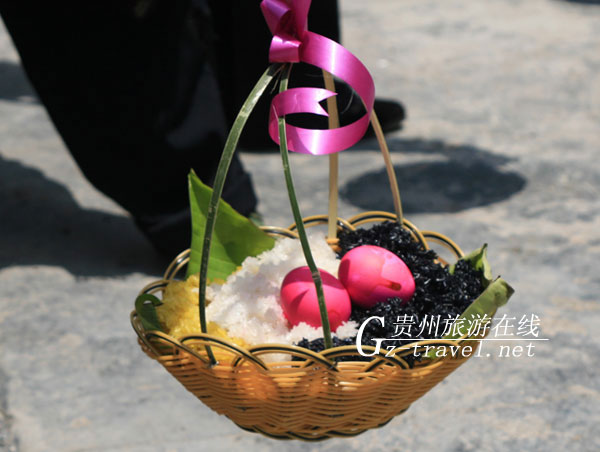 传说很久以前,一户姓张的人家有7个闺女,如出水芙蓉。她们都想嫁一个好苗生。于是,七姊妹到山上采集树叶,每人煮上一锅彩色糯米饭,邀四方后生到施洞寨来吃饭,唱山歌,踩鼓点(跳圈舞)。大伙整天整天的跳,整夜整夜的唱。通过3天3夜的欢歌狂舞,七姊妹在上百名男子中都找到了自己的如意 郎 君,她们把彩色糯米饭送给情郎。第二天,小伙子们打开姑娘送给的五彩糯米饭,里面藏的或是竹筷,或是松针,或是椿芽,分别表示允诺成双,或是希望继续往来加深了解和感情,或是只做一般朋友交往。