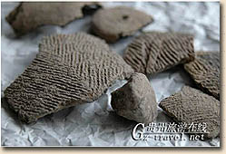 吊洞位于距龙里县城不到100公里的新庄村民组,吊洞在村民组后的癞岩坡,洞口高约10米,宽约6米,离地面约30米,洞前谷底有小河蜿蜒而过。 洞内发现的遗物有石器、陶器、铁器和料珠等。部分被省文物考古研究所专家取走作考证,另有部分还保存于谷龙乡政府。 渣口洞位于龙里县谷龙乡古新村,渣口洞遗址洞口高约9米,宽约20米,深约40米,洞内南侧有一个小支洞,洞内极为平坦。 我们正向渣口洞走进 渣口洞遗址中发现的陶片