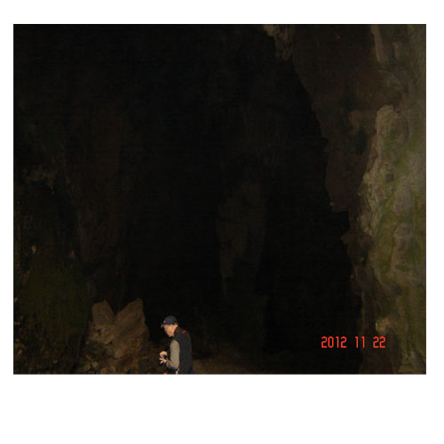 再说 朱允炆身扮和尚,法名应文(“宫中阴沟,直通土城之外,高丈二,阔八尺,足行一人,备祸潜出”《明史考证》),来到郊外的神乐观,会齐应贤应能两人,一路朝南走来。到得册亨,朱允炆和杨应能叶希贤住进燕子洞,打算把位于燕子洞边上靠贞丰一侧的金矿挖出来作为日后复国的经费,再从燕子洞前面的水路出兵。据说,为表明心志,朱允炆命杨应能在前洞后洞各用朱绘形文字刻了一幅对联。