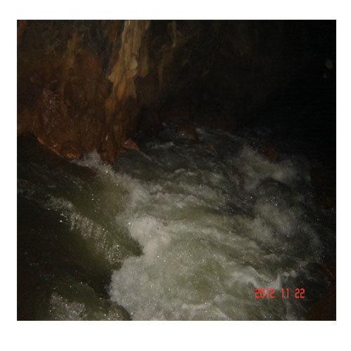 踏着怪石嶙峋的缝隙,顶着头上的钟乳,穿过中间的小洞来到一个平台上。光线昏暗,偶尔传来一两声燕子的惊叫。向导在喊:没有电筒,不能再往前,危险!摸了摸顶上下垂的钟乳石,光滑,冰冷。驻足细听,除了“哗哗”的水流声,再无其他声响。借着洞外的微光,脚底下空空的看不清有多深,只感觉有一股凉气。转身扶着洞壁,一步一步慢慢踩着尖利的石块回到洞外,即刻感到一片光明。洞的右边半山上是一小型发电站。左面,一座座山峰被浓雾笼罩,只隐隐的看出有的像犀牛,有的像野马,有的像美人,千奇百怪,美不胜收。据说天帝路过此地,见一男子在洞前垂泪,问之则曰:邻家姑娘与之共奉父母,今父母双亡,无以为报,本想结秦晋之好,奈何山险水缺石旮旯,愧对姑娘。天帝感其虔诚,随手一扬,那些难看的山包霎时变得棱角分明,多姿多彩。天帝再把双手一推,轰然一声,燕子洞前后洞打通。后洞出现一个大湖。男子感天帝大德,跪地哭送,泪如雨下,不久竟然在前面形成一条小溪,长流不断。